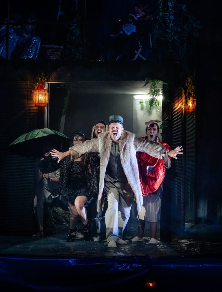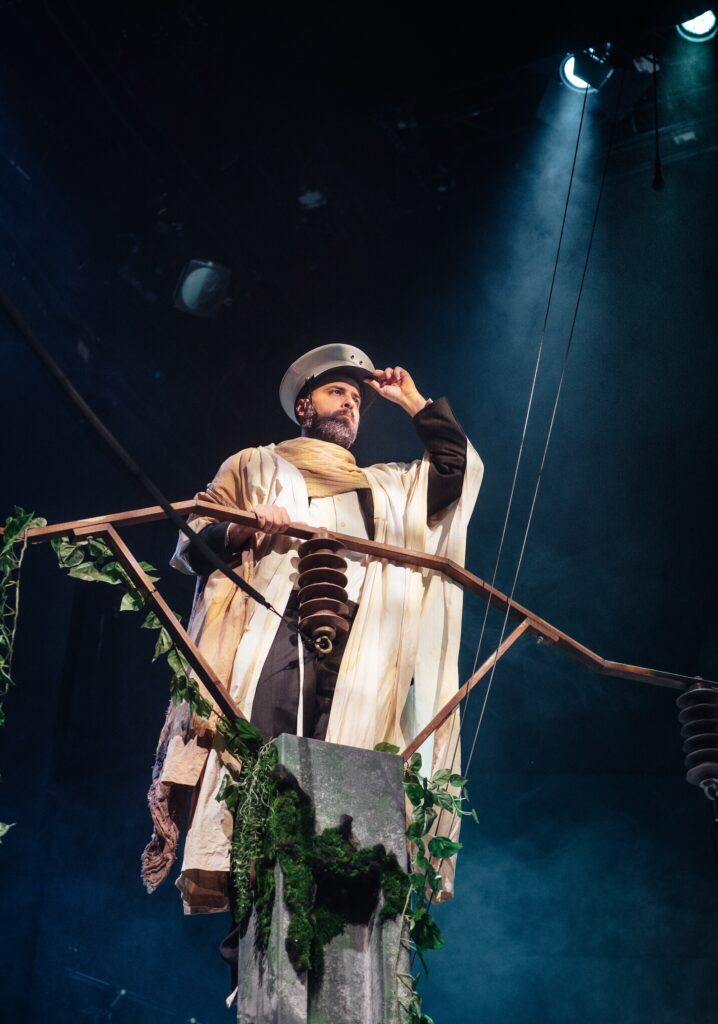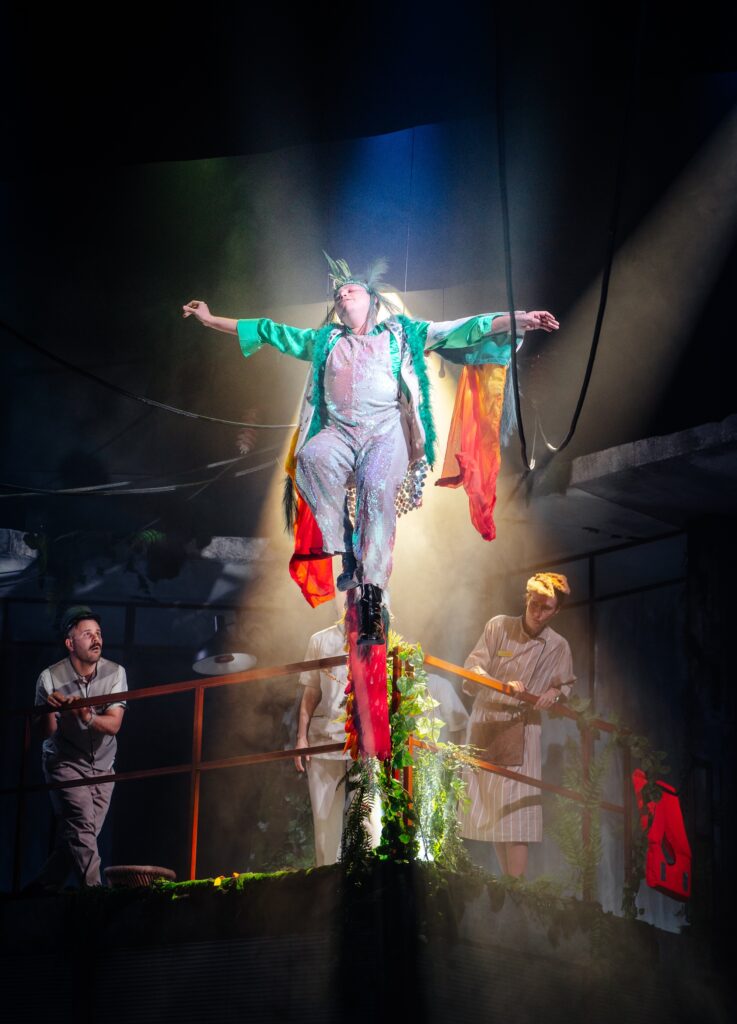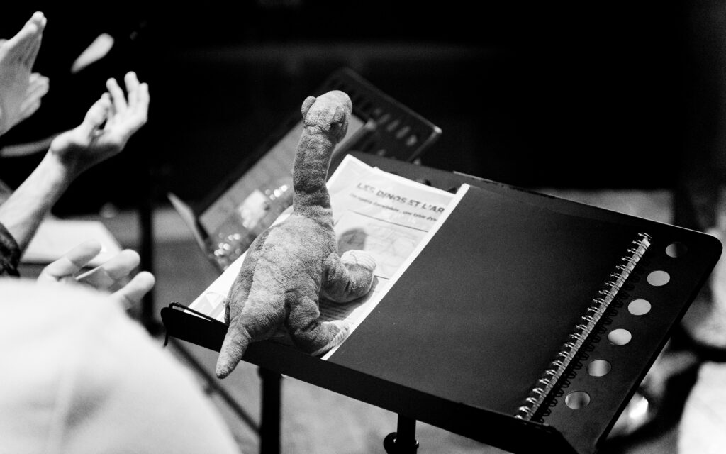 Blending satire and tenderness, Les Dinos et l’Arche brings together humans, animals and extinct creatures in a changing society, a distorting yet revealing mirror of our own. In a whirlwind of emotions, absurd dialogue, bursts of laughter and spectacular metamorphoses, it becomes clear that the dinosaurs are forced to adapt in order to survive in a world doomed to extinction… Does that remind us of anything?